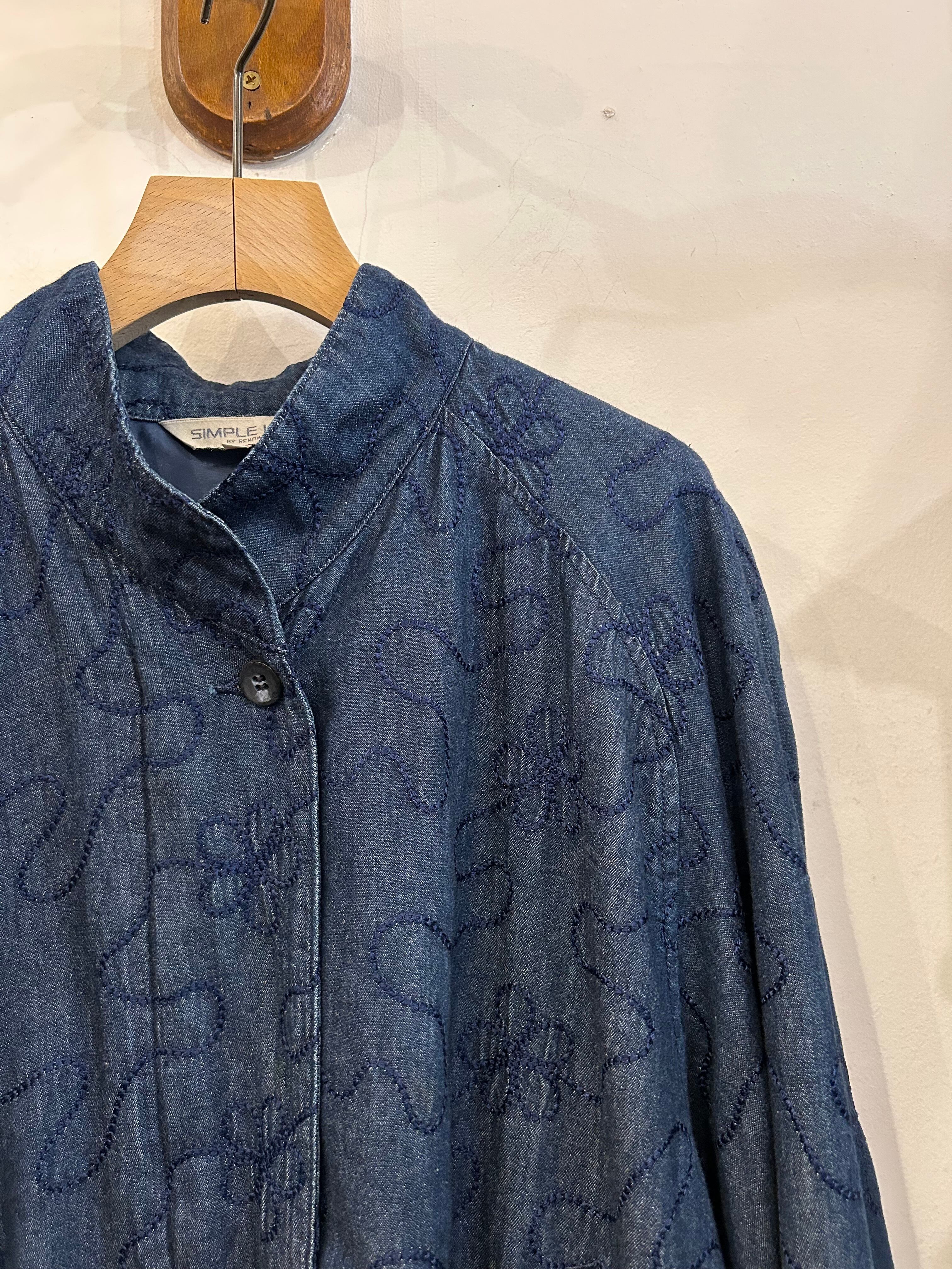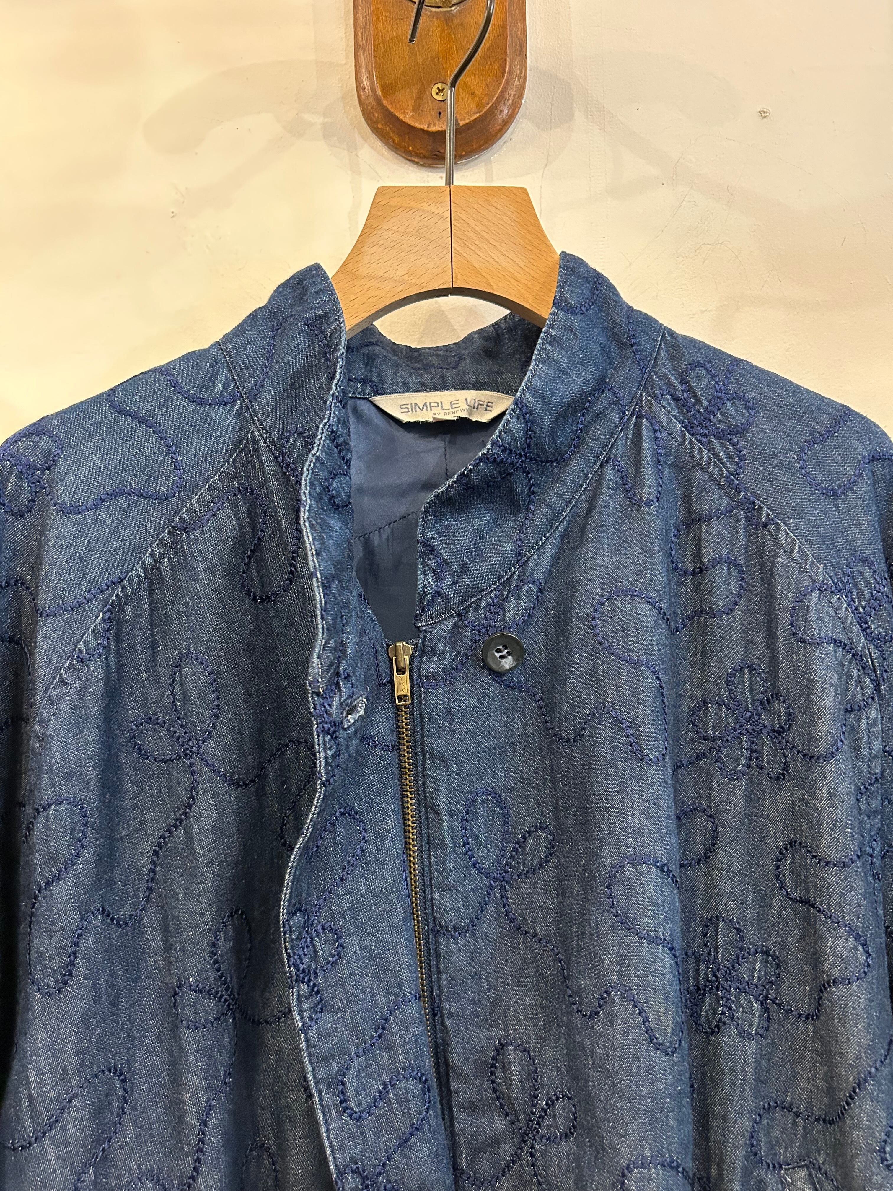 embroidery zip up denim blouson