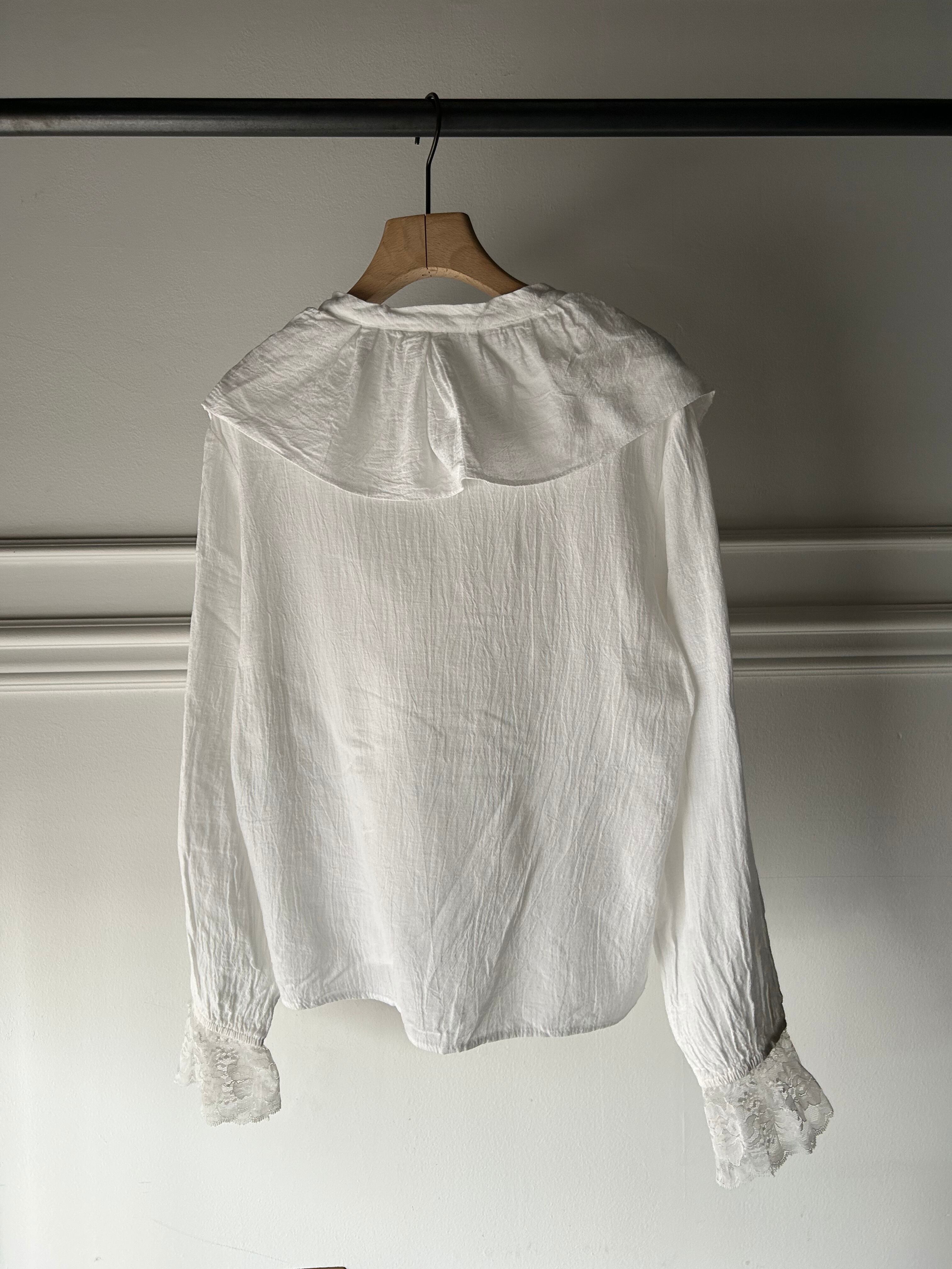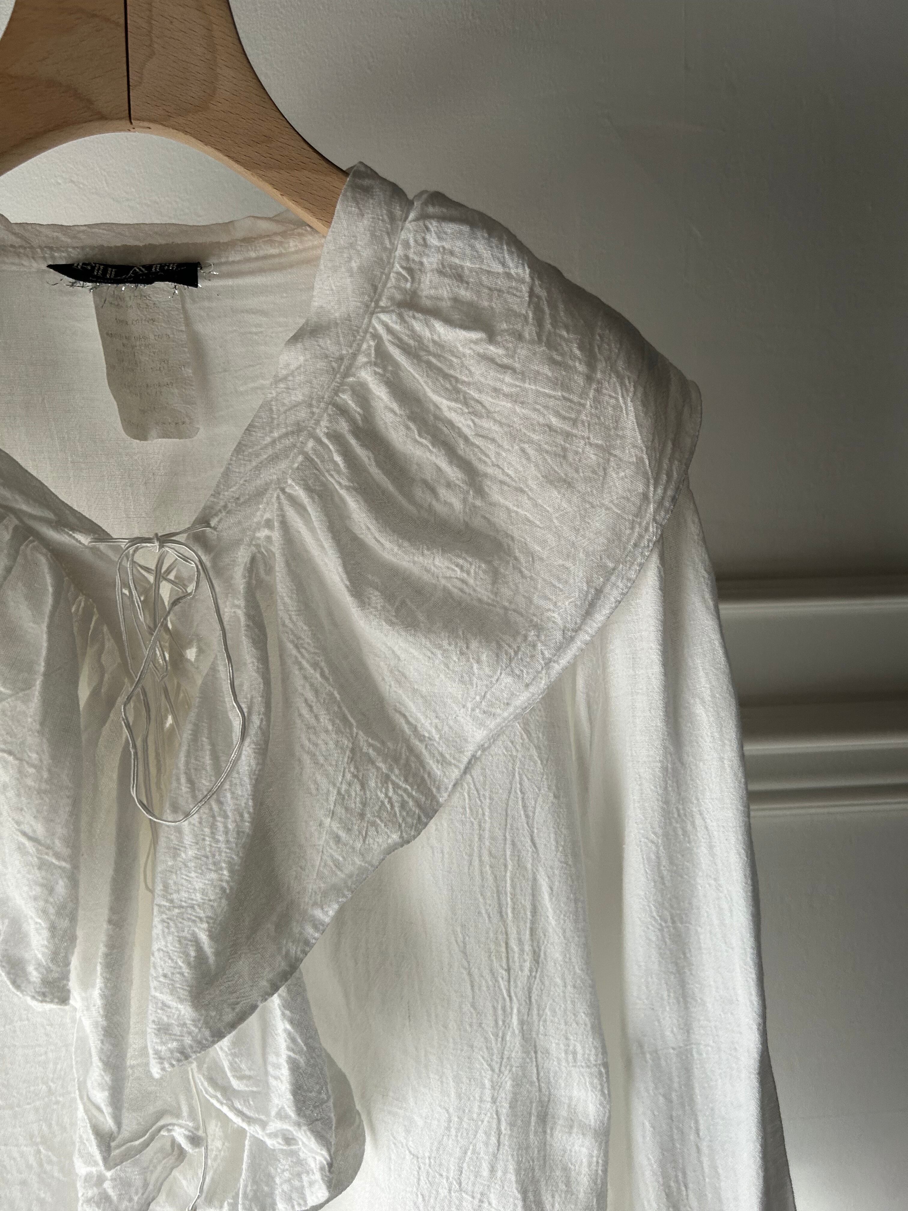 frill collar lace up blouse
