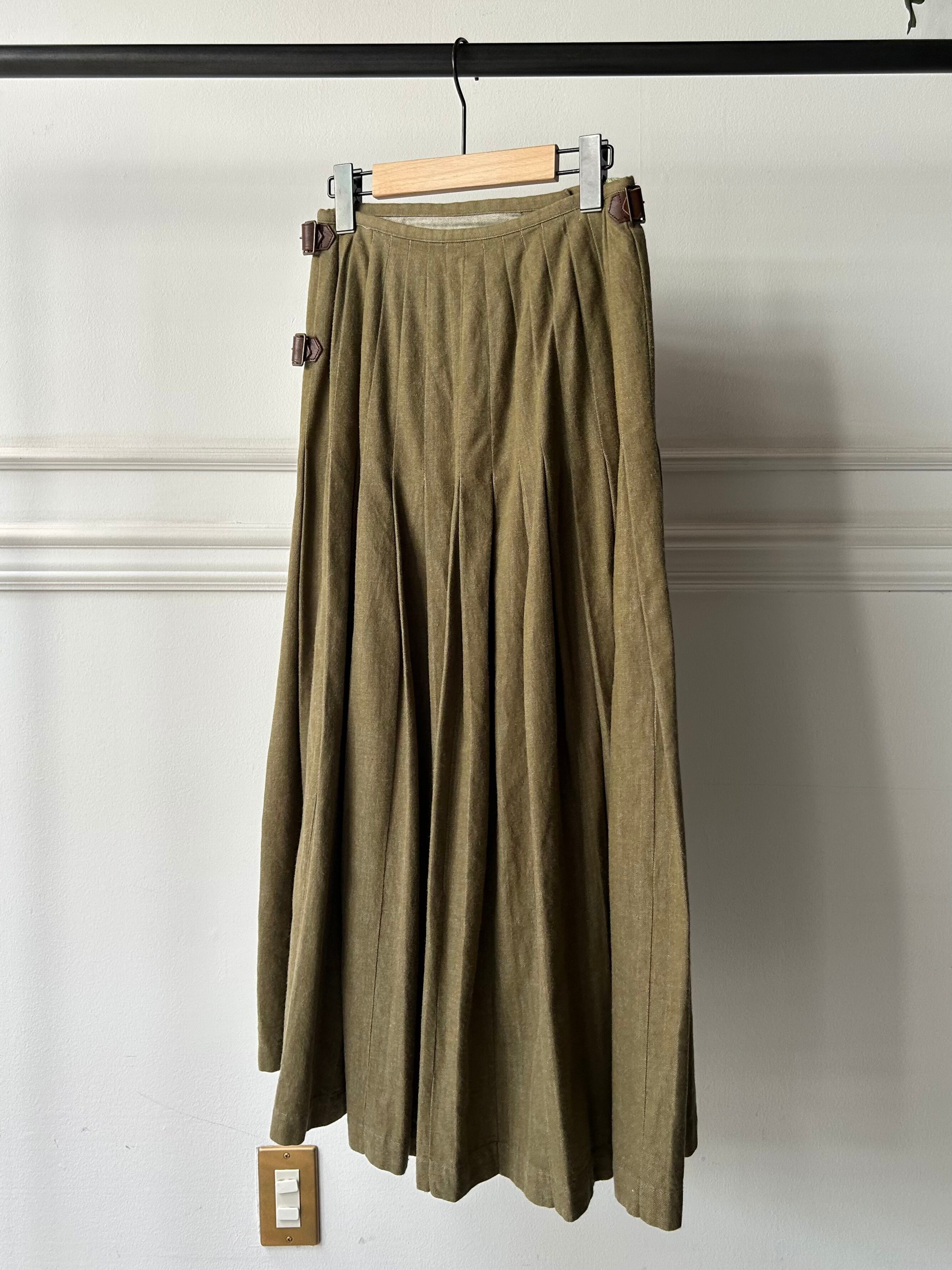 side belt detail pleated skirt