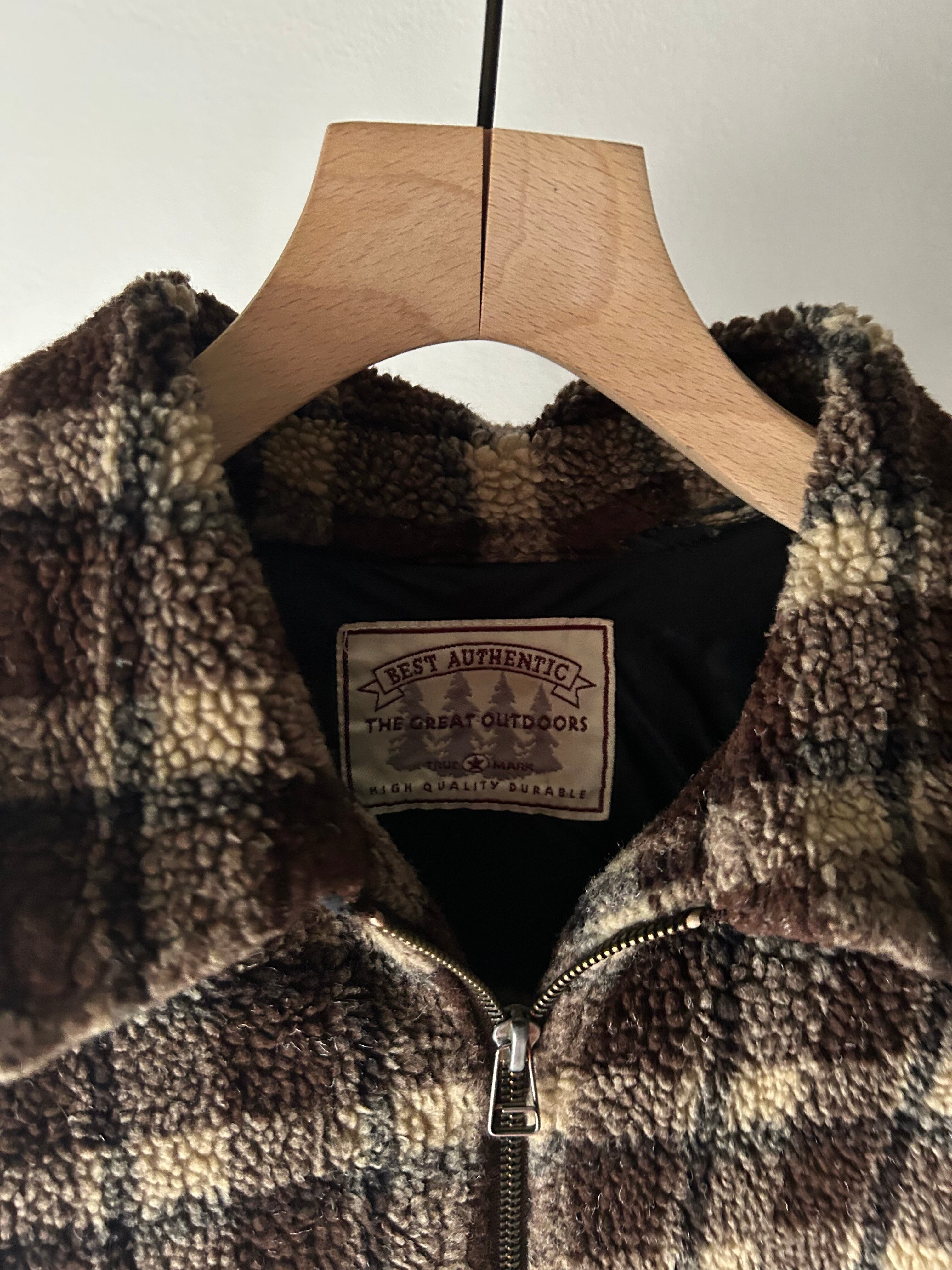 plaid zip up boa jacket