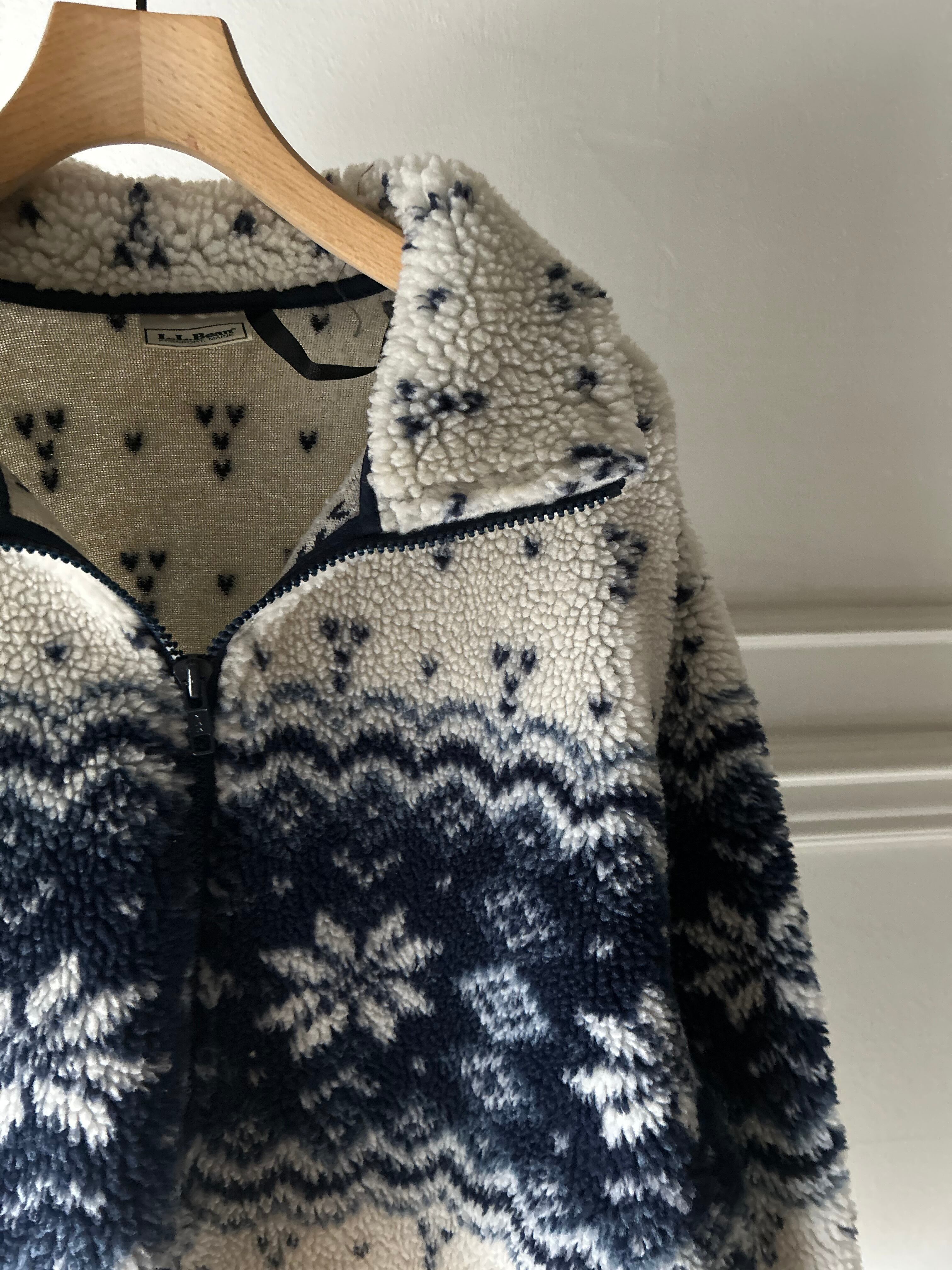 ''L.L.Bean'' snow pattern half zip boa jacket